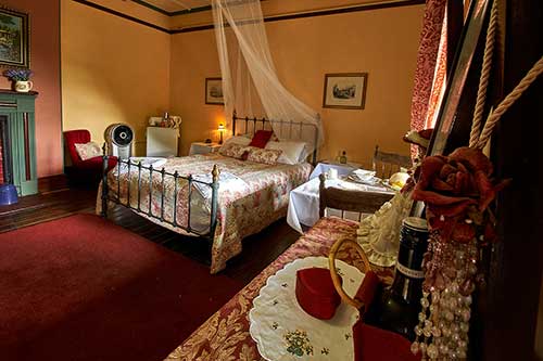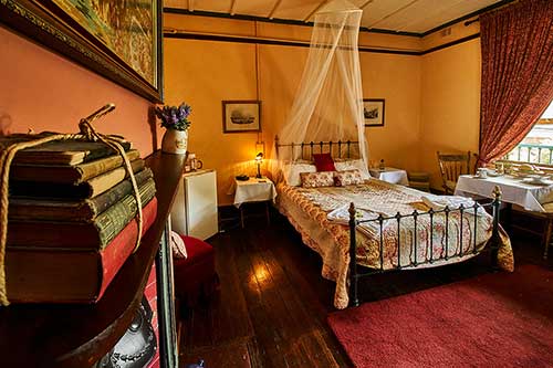 The Victoria Room exudes the elegance associated with the reign of Queen Victoria. Decorated in a style befitting the royals, this grand room of deep reds, soft lights and sheer curtains is one of our most popular accommodation choices.